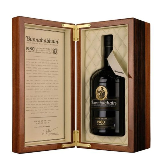 Este single malt de Islay de la destilería Bunnahabhain ha respirado el aire salado de la costa del Sonido de Islay durante más de 14.000 días. Destilado en 1980, el líquido maduró por primera vez en barricas de jerez Oloroso antes de ser transferido a roble de jerez dulce Canasta. Sólo se han producido 1200 botellas, cada una con una graduación de barrica de 49,5% vol. y alojadas en un hermoso estuche de madera con un interior de cuero acolchado. En nariz hay ricos aromas de roble, frutas secas, higos, pasas y pasas, todo equilibrado con rica melaza, chocolate amargo y vainilla. En boca hay roble más rico, melaza y frutos secos, con café negro y cacao junto con nueces tostadas y un toque de salmuera costera. El final es seco pero persistente con frutas dulces y notas de roble.