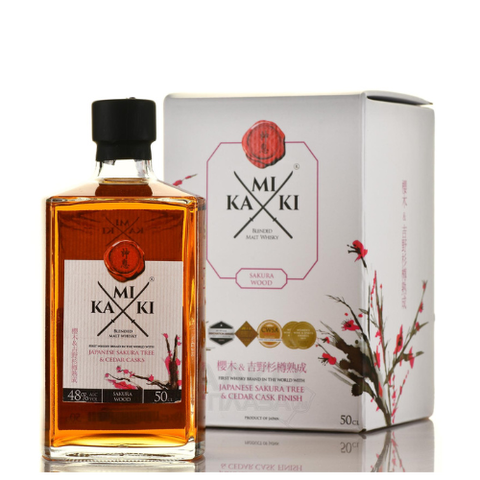 Kamiki Sakura Wood es el primer whisky del mundo envejecido en barricas de madera de cedro y sakura. También es el primer whisky del mundo que madura en hasta tres tipos de barricas: primero madurado en roble, segundo en cedro y finalmente en sakura.